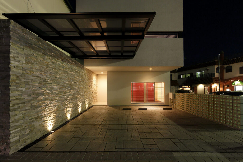 夜には照明が柔らかく灯り、街に溶け込む温かな表情をつくります。